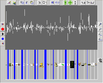 Sound is vibrations in pressure that travels through space. The wavy line displays these vibrations over time as a person speaks. The purpose of this panel is to be able to attach picture annotations to differenct places of the recording. There are a series of buttons surrounding the annotation panel. We will describe buttons all of the buttons and these functions on linked pages.