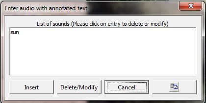 'Delete/Modify' button (see the picture above). If you are adding a new sound to this picture, click on the insert button and