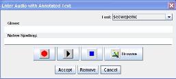When you choose to record a sound, a dialog window displays. We describe how to interact with this window in this section.